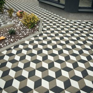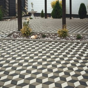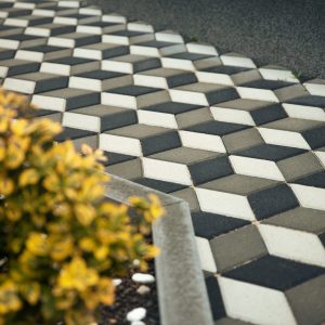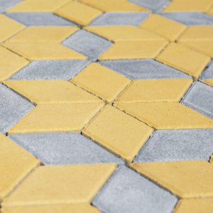 Завжди самодостатній та сучасний, Ромб дозволяє легко створювати оригінальний оптичний 3D-ефект тривимірності, завдяки якому викладені бруківкою фігури виглядають об’ємними. Не використовуючи жодних додаткових бетонних елементів, застосовуючи лише варіації кольору, можна досягнути цікавого та несподіваного сприйняття простору, надати йому глибини.
