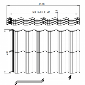 Ширина між піками хвиль – 183 мм