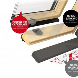 Елементи «Потрійного Захисту»: двокамерний склопакет, термо-блок WD та пароізоляційна плівка гарантують високу енергоефективність, а також надійний і «щільний» монтаж.