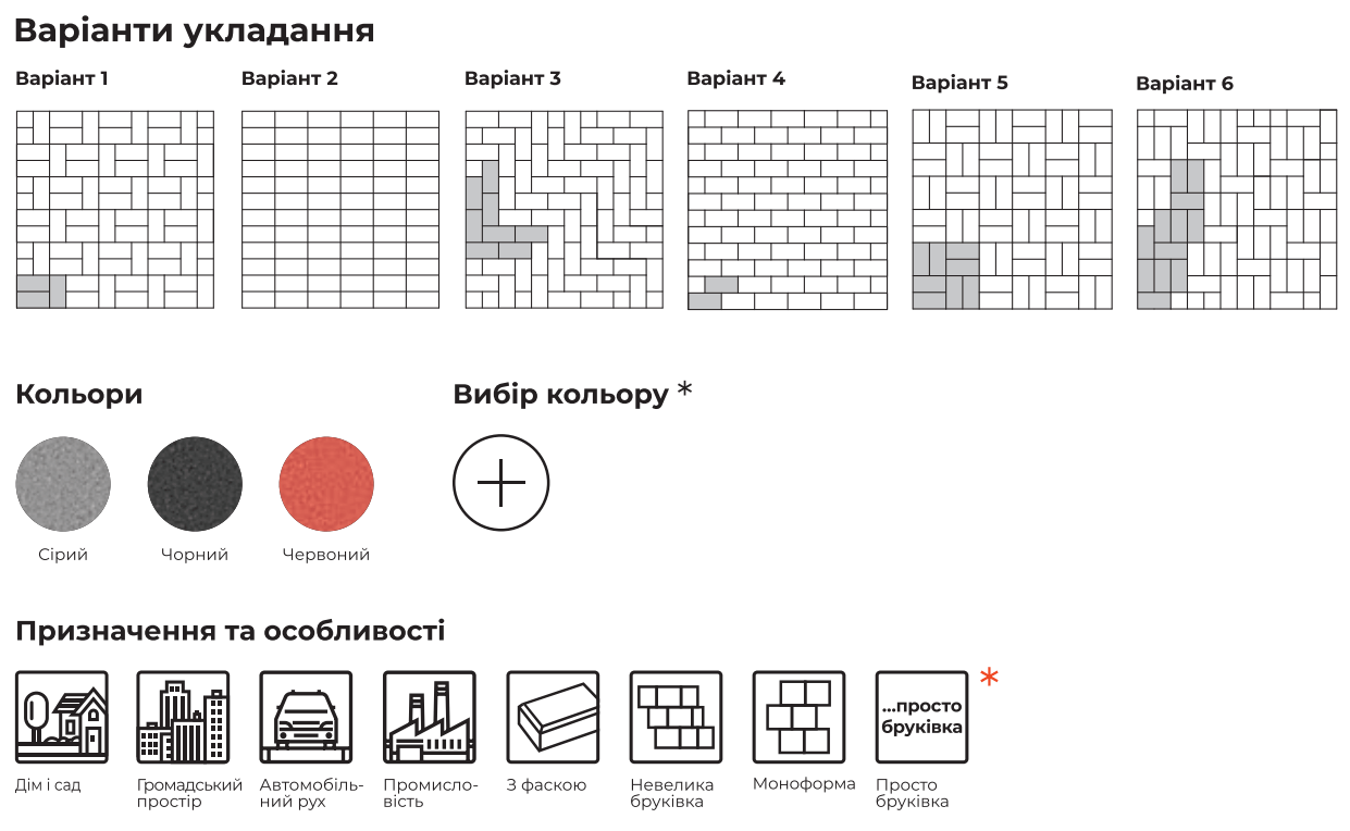 *Ціна змінюється в залежності від кольору та висоти бруківки, щоб визначити ціну оберіть параметри нижче