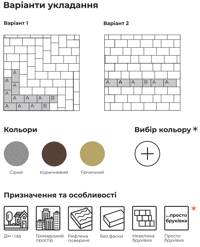 *Ціна змінюється в залежності від кольору та висоти бруківки, щоб визначити ціну оберіть параметри нижче