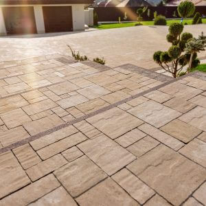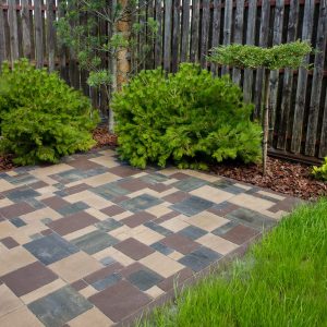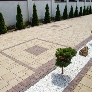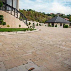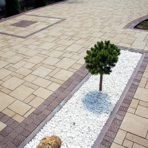 Брусчатка Концепт отличается благодаря яркому контрасту больших и мелких элементов, входящих в этот комплект.